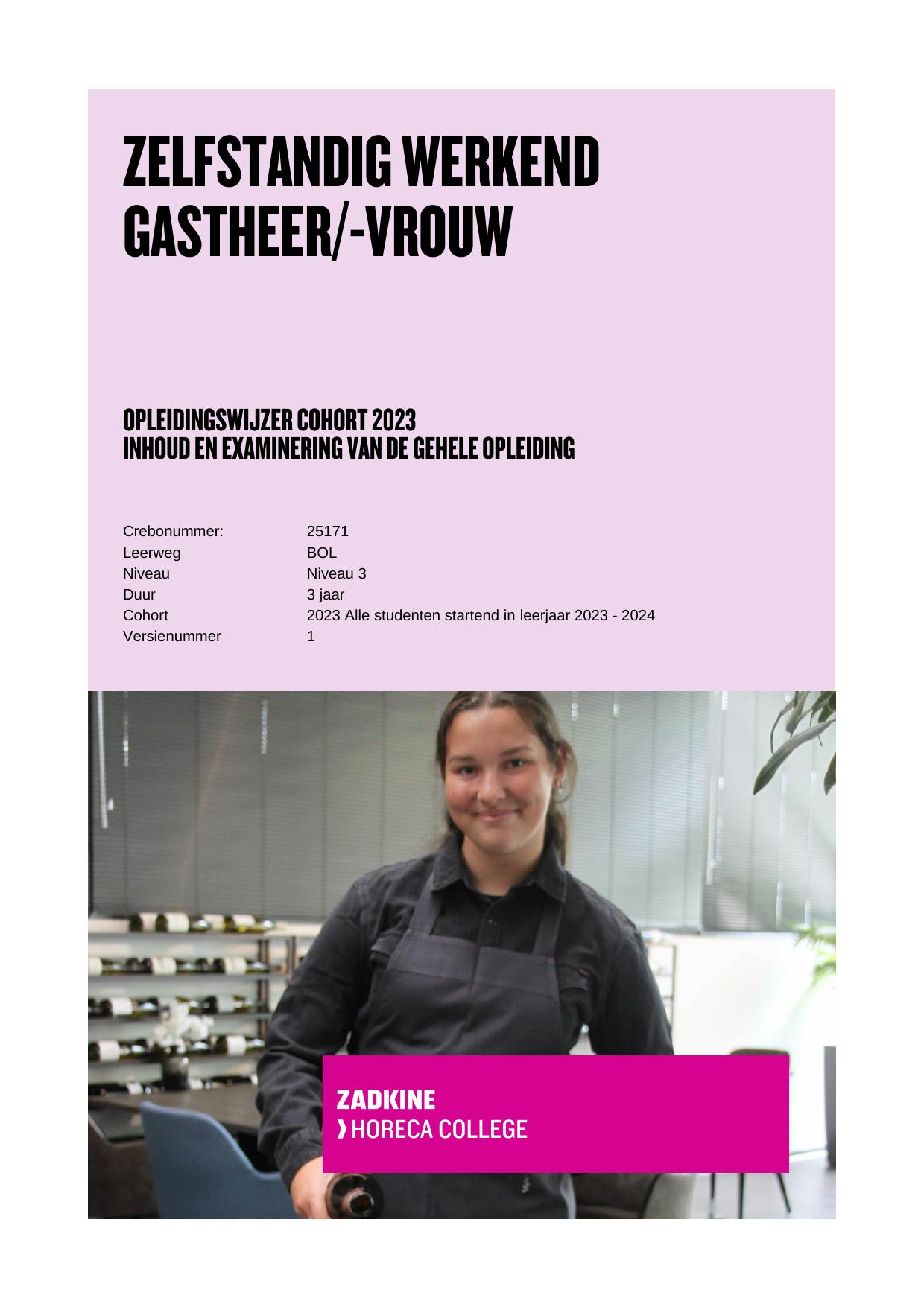 Zelfstandig werkend gastheer/-vrouw 25171BOL in cohort 2023-2024