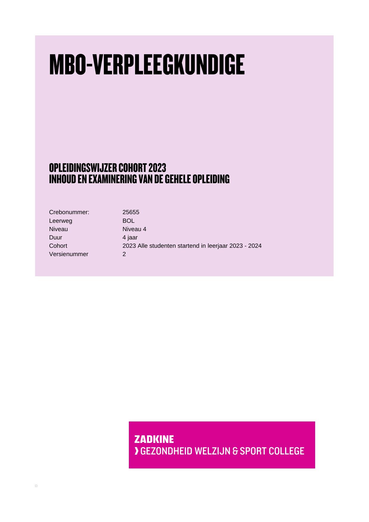Mbo-Verpleegkundige 25655BOL in cohort 2023-2024