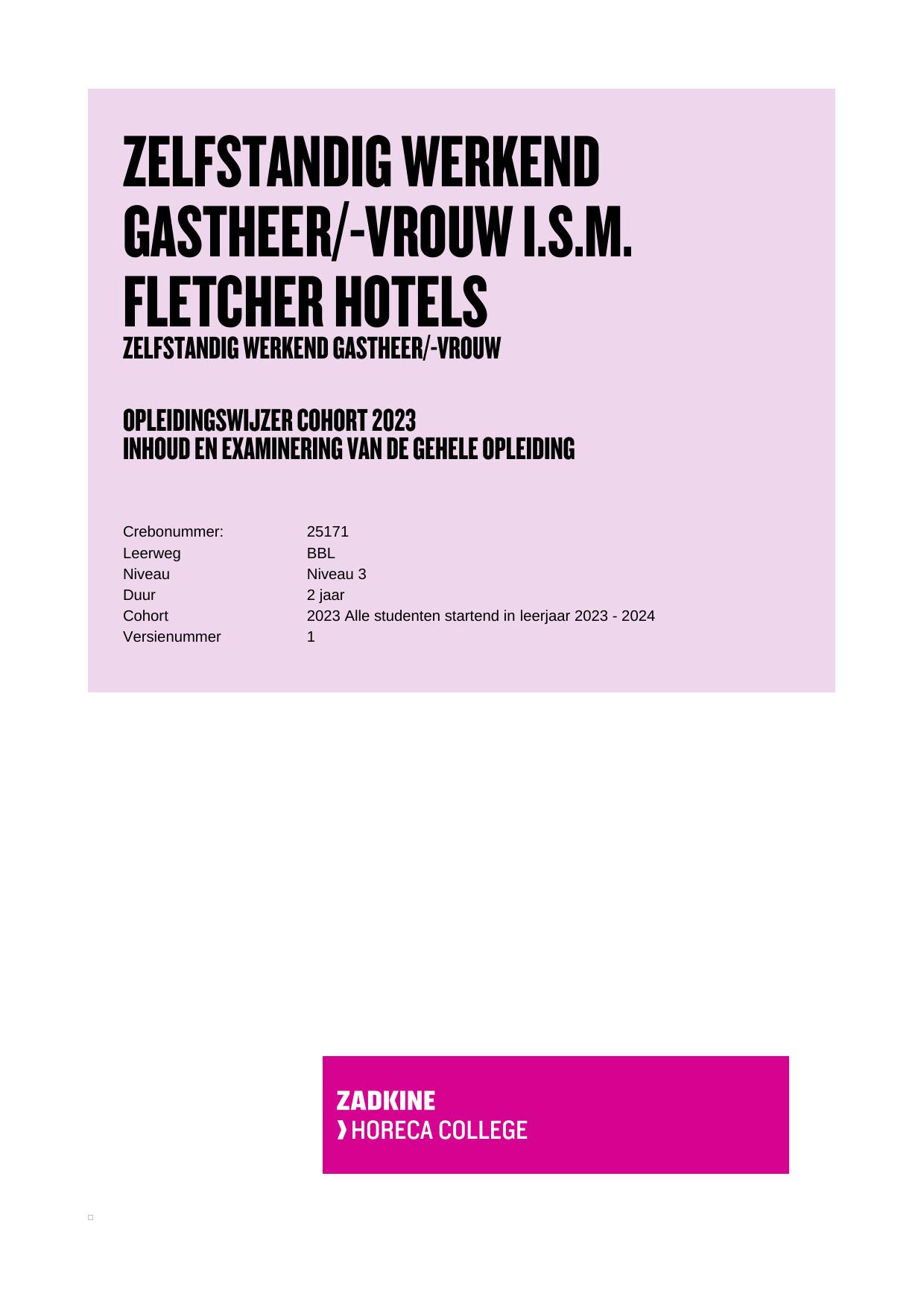 Zelfstandig werkend gastheer/-vrouw 25171BBLFLT in cohort 2023-2024