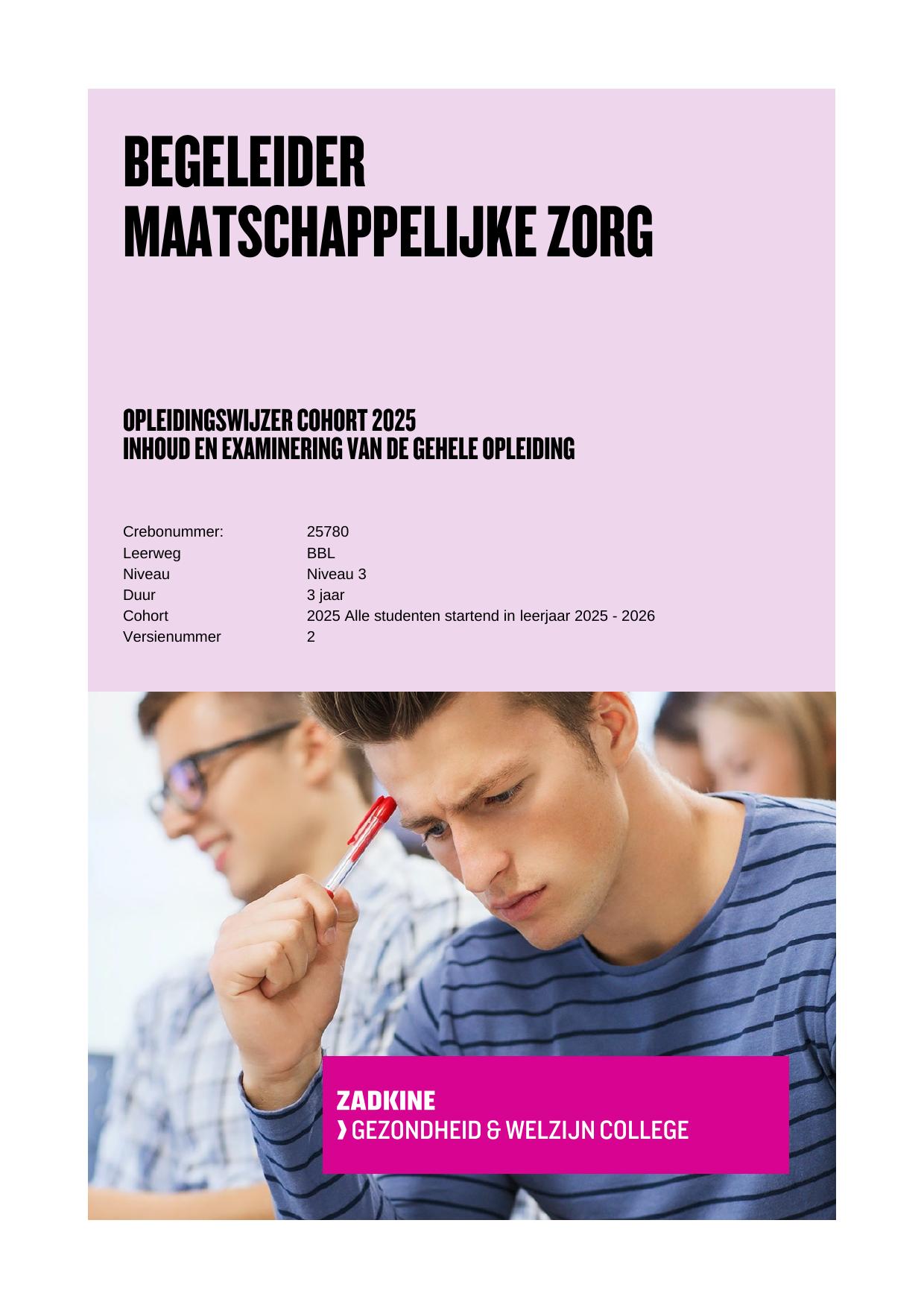 Begeleider maatschappelijke zorg 25780ZWNIV3BBL in cohort 2025-2026