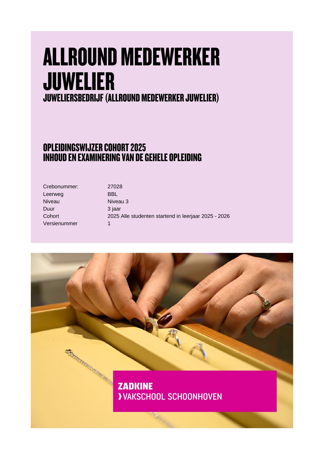 Juweliersbedrijf (Allround medewerker Juwelier) 27028BBL in cohort 2025-2026