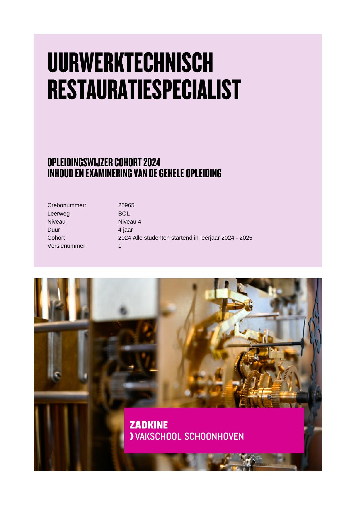 Uurwerktechnisch restauratiespecialist 25965BOL in cohort 2024-2025