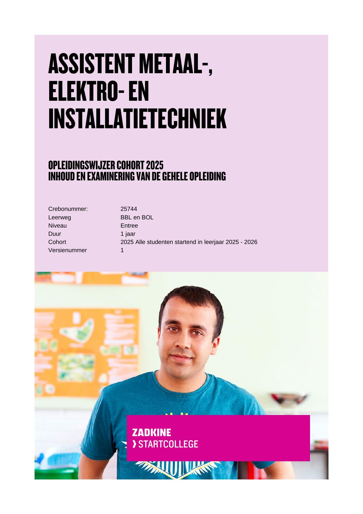 Assistent metaal-, elektro- en installatietechniek 25744BOL in cohort 2025-2026