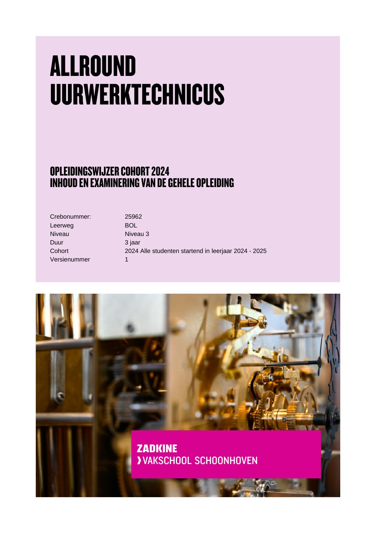 Allround uurwerktechnicus 25962BOL in cohort 2024-2025