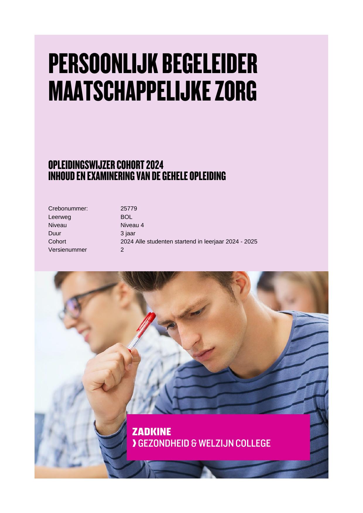Persoonlijk begeleider maatschappelijke zorg 25779BOL in cohort 2024-2025