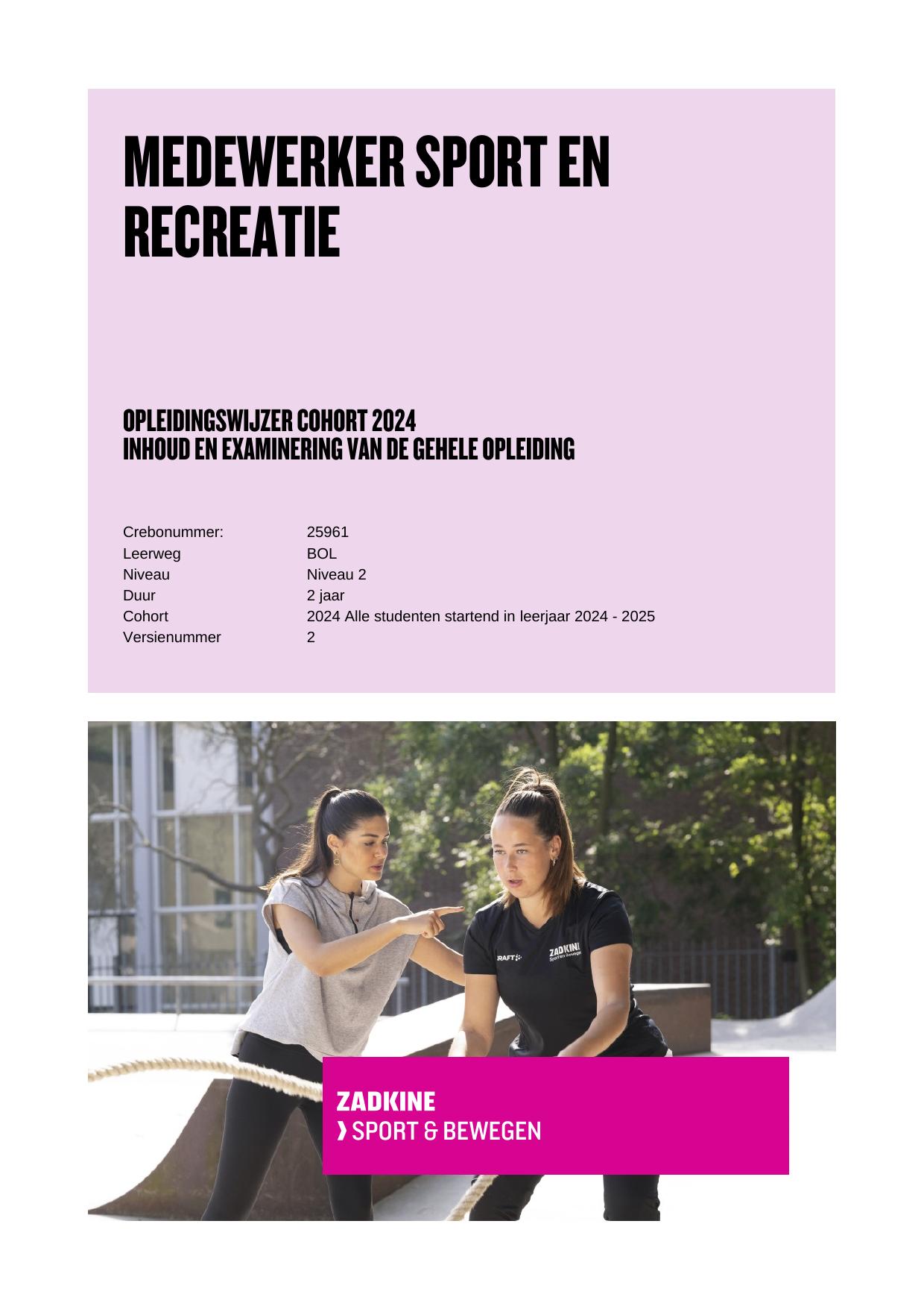 Medewerker sport en recreatie 25961BOL in cohort 2024-2025