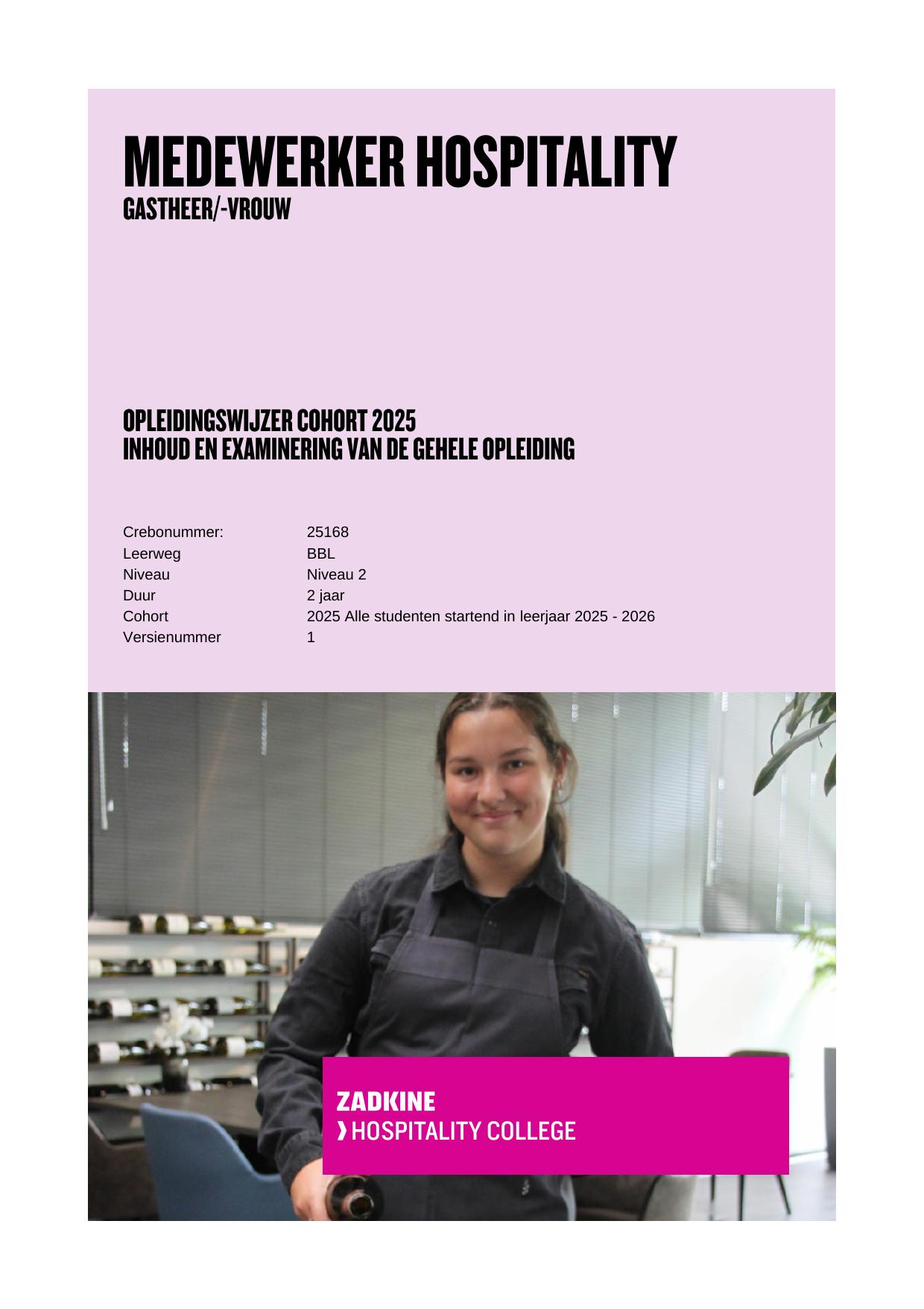Gastheer/-vrouw 25168BBL in cohort 2025-2026