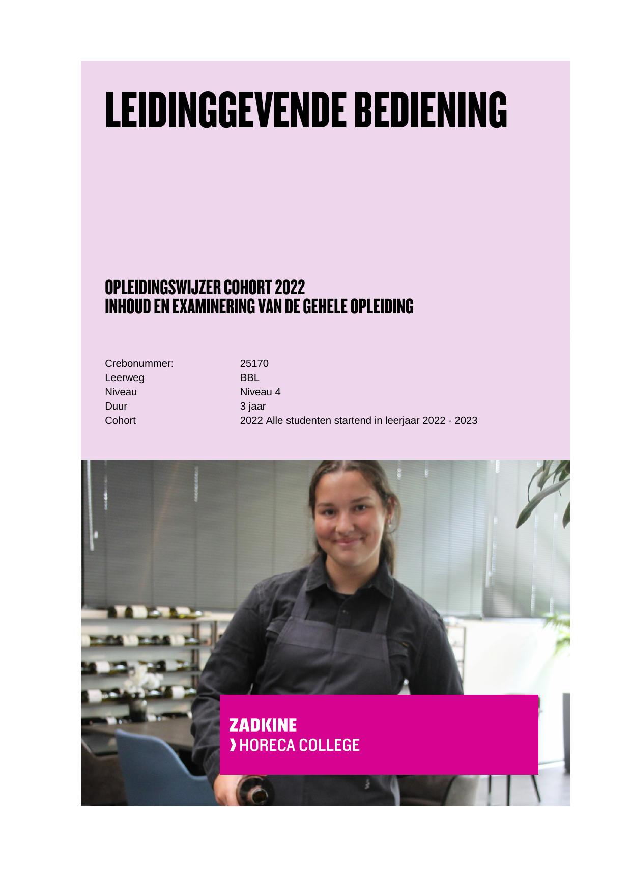 Leidinggevende bediening 25170BBL in cohort 2022-2023