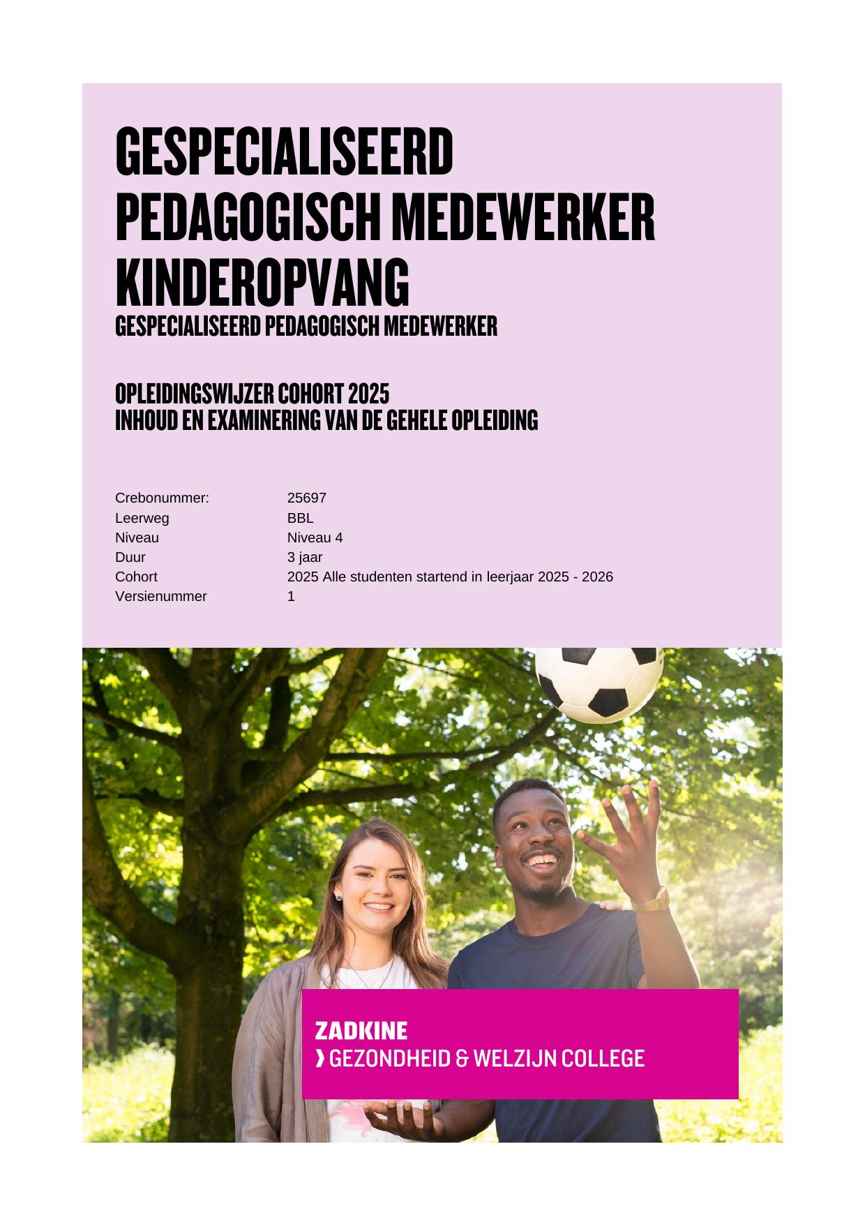 Gespecialiseerd pedagogisch medewerker 25697BOL in cohort 2025-2026