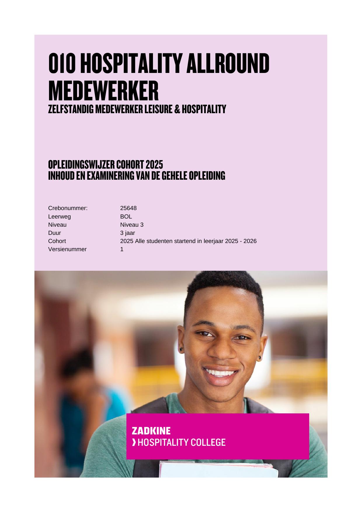 Zelfstandig medewerker leisure & hospitality 25648HAMBOL in cohort 2025-2026