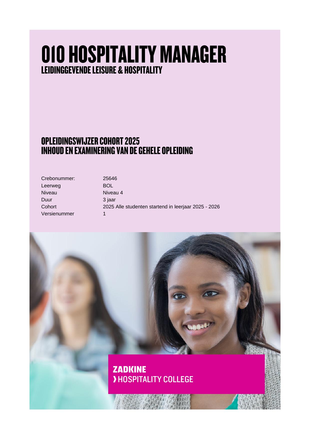 Leidinggevende leisure & hospitality 25646HMBOL in cohort 2025-2026
